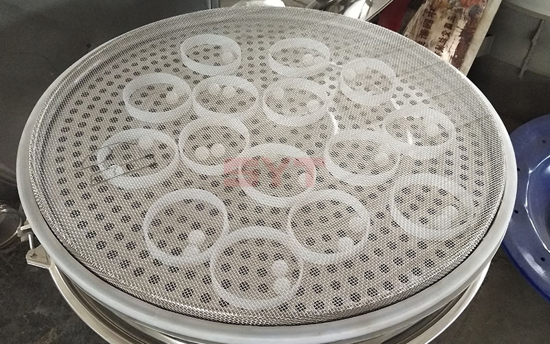 篩蓋由進料口及斜錐組成,其下端與篩框相接,篩蓋和篩框由卡環聯接,在篩蓋和篩框之間有密封墊。篩框由鋼板卷焊而成,其上下端均有一承接圈,下內部設有一法蘭圈,用于固定篩網組件等結構。