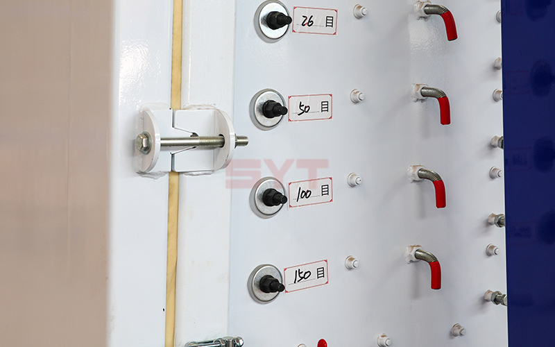 每層篩網均有篩網防堵清理裝置,在工作狀態下連續不停地對篩網進行清理,保證篩網不堵孔。
