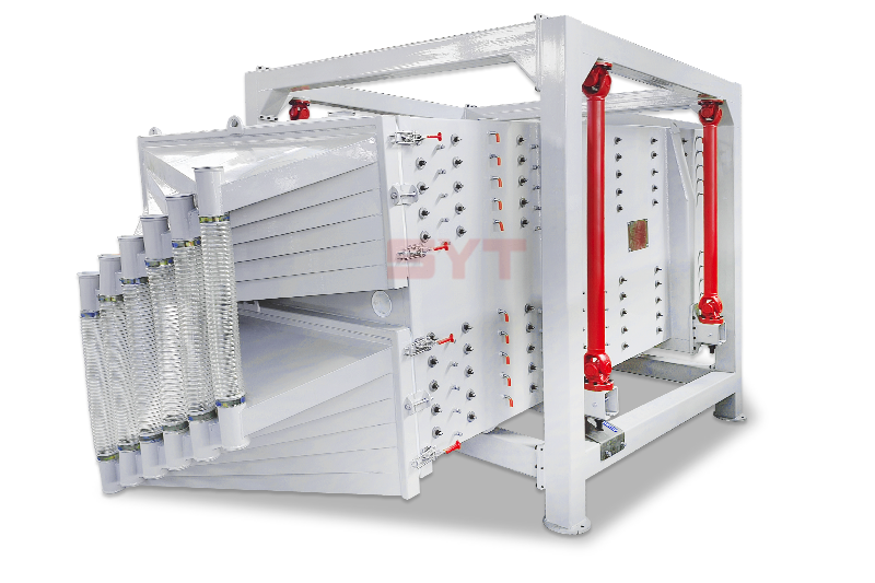 l 萬向軸:整個篩箱由萬向軸連接,當篩機做搖擺運動時,萬向軸也跟隨旋轉,對旋轉動力起到緩沖、阻尼的作用,使整個篩機運行更順暢。