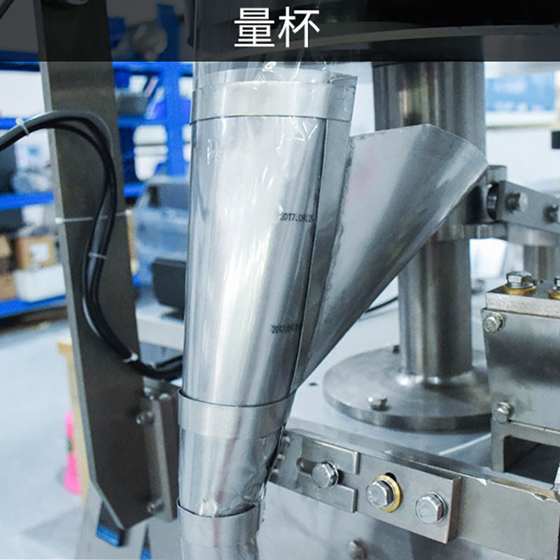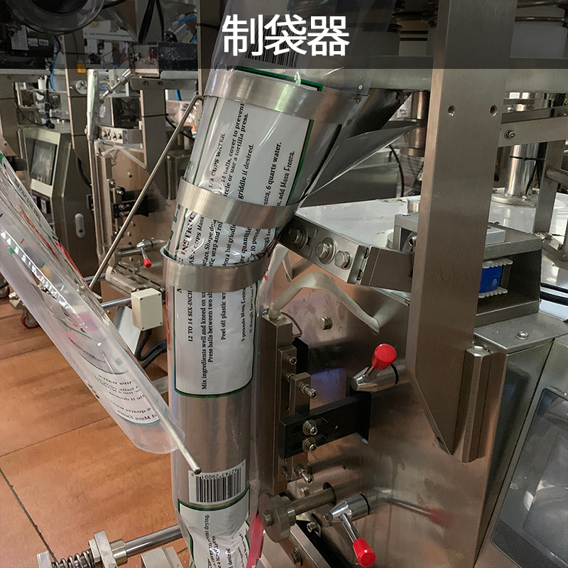 立式包裝機主要由計量裝置、傳動系統、橫封和縱封裝置、翻領成型器、充填管及薄膜牽拉供送機構等部件組成。