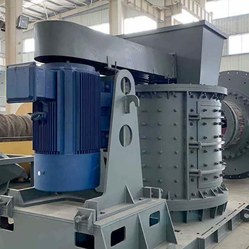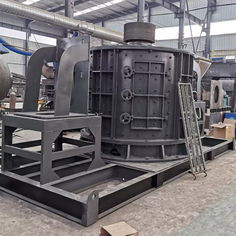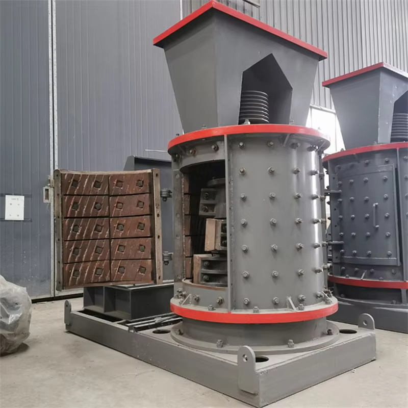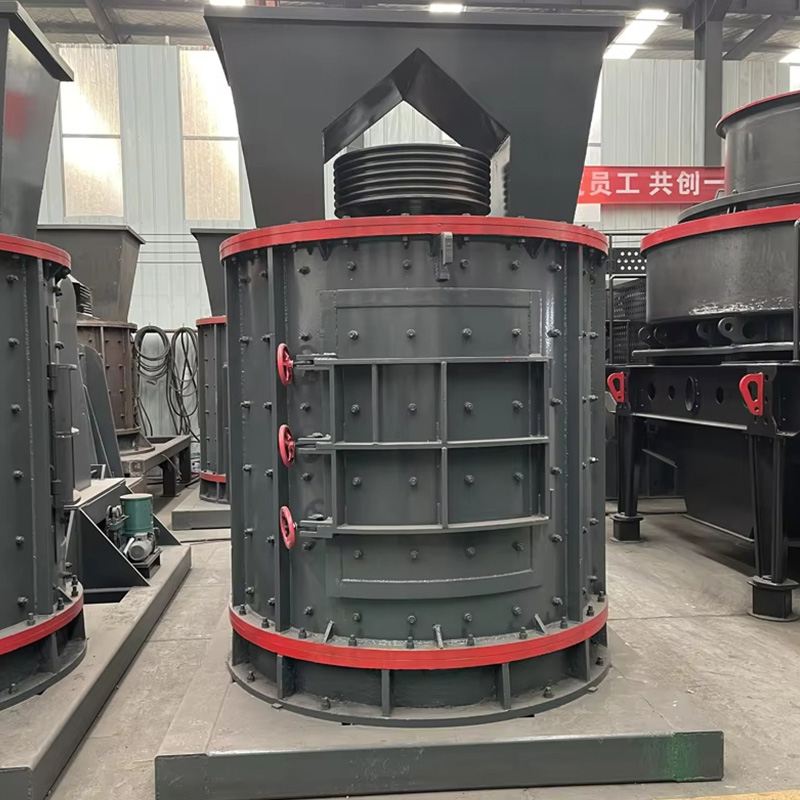 物料由機器上部垂直落入高速旋轉(zhuǎn)的葉輪內(nèi),在高速離心力的作用下,與另一部分以傘狀形式分流在葉輪四周的物料產(chǎn)生高速撞擊與粉碎,物料在互相撞擊后,又會在葉輪和機殼之間以物料形成渦流多次的互相撞擊、摩擦而粉碎,從下部直通排出,形成閉路多次循環(huán),由篩分設(shè)備控制達到所要求的成品粒度。